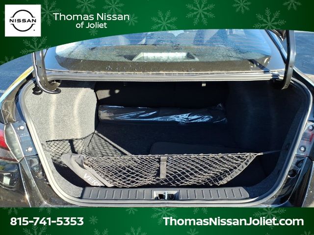Super Black Metallic 2025 Nissan Versa 4D Sedan 1.6 SV 1.6L I4 DOHC 16V 32/40 City/Highway MPG CVT FWD