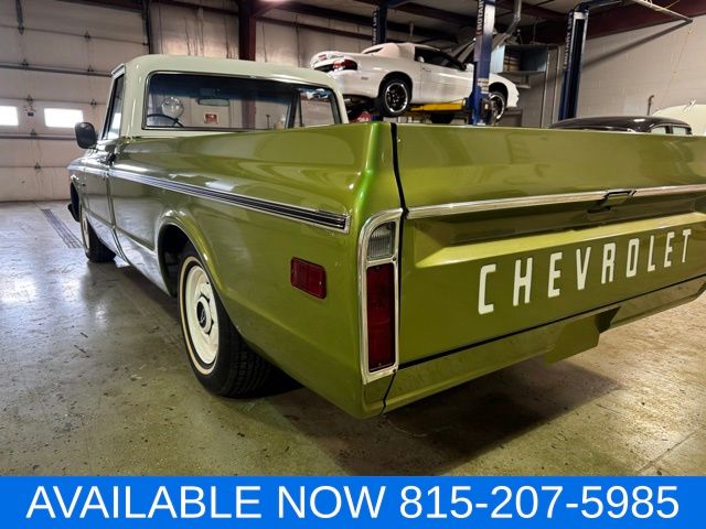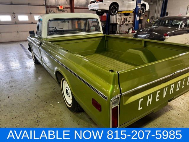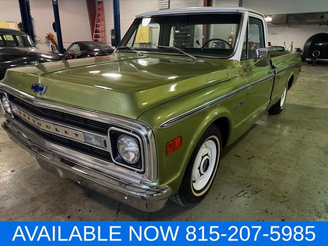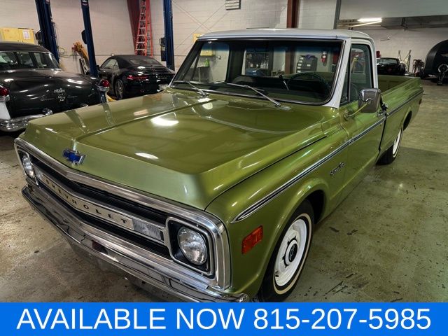 Up for sale is this rock solid full frame off restored numbers matching 1970 Chevrolet C-10 Pickup. 307 v8 with 350 turbo transmission and 12 bolt rear differential. Truck was lowered with Belltech drop spindles and lowering coil springs. Green with white upper color. green interior and a spray in bed liner in color. this truck runs and drives great. Super straight truck that appears to be all original rust free sheet metal. Give us a call with any questions(815)207-5985 ask for Tom Heaton.