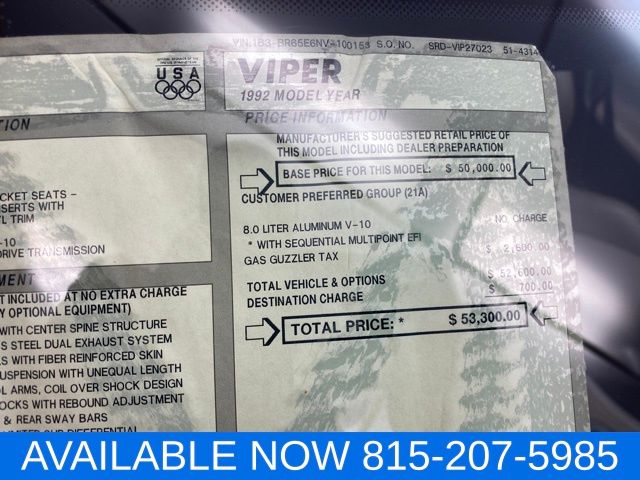 1992 Dodge Viper Sports Car RT-10 at Thomas Nissan