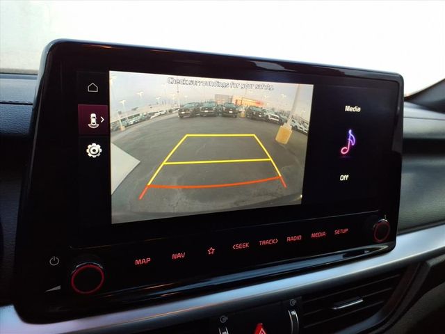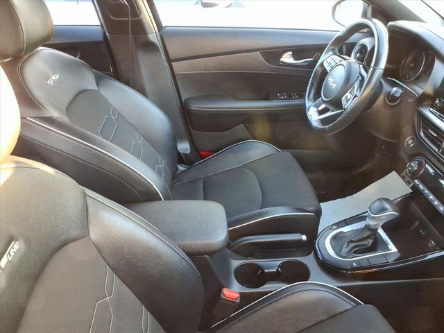Forte GT-Line, ** Alloy Wheels / Premium Wheels, ** Apple CarPlay/Android Auto, ** Backup Camera, ** Blind Spot Monitor, ** Bluetooth, Hands Free, ** Cross Traffic Alert, ** Cruise Control, ** Keyless Entry, ** Lane Departure Warning, ** Navigation System, ** Premium Sound System / Premium Audio, ** Rain Sensing Wipers, ** Rear Cross Traffic Alert, ** Remote Start, ** Satellite Radio, ** Stability Control, ** Steering Wheel Controls, 17" x 7.0J Alloy Wheels, 4-Wheel Disc Brakes, 6 Speakers, ABS brakes, Active Cruise Control, Air Conditioning, Alloy wheels, AM/FM radio: SiriusXM, Apple CarPlay & Android Auto, Auto High-beam Headlights, Automatic temperature control, Brake assist, Bumpers: body-color, Carpet Floor Mats, Cloth & SynTex Seat Trim, Delay-off headlights, Driver vanity mirror, Dual front impact airbags, Dual front side impact airbags, Electronic Stability Control, Emergency communication system, Exterior Parking Camera Rear, Front anti-roll bar, Front Bucket Seats, Front Center Armrest, Front dual zone A/C, Front fog lights, Front reading lights, Front wheel independent suspension, Fully automatic headlights, Heated door mirrors, Illuminated entry, Leather Shift Knob, Leather steering wheel, Low tire pressure warning, Navigation System, Occupant sensing airbag, Outside temperature display, Overhead airbag, Overhead console, Panic alarm, Passenger door bin, Passenger vanity mirror, Power door mirrors, Power steering, Power windows, Radio data system, Radio: 10.25" Display Audio, Rear Bumper Applique, Rear seat center armrest, Rear window defroster, Remote keyless entry, Security system, Speed control, Split folding rear seat, Spoiler, Sport steering wheel, Steering wheel mounted audio controls, Tachometer, Telescoping steering wheel, Tilt steering wheel, Traction control, Trip computer, Turn signal indicator mirrors, Variably intermittent wipers.